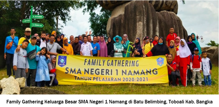 Sebagai kegiatan refreshing dan upaya untuk lebih merekatkan dan mengakrabkan hubungan guru, staf TU beserta keluarganya, SMA Negeri 1 Namang menggelar kegiatan Family Gathering di Pantai Kelisut Batu Belimbing, Toboali Kab. Bangka Selatan, Rabu (19/8/2020). Berangkat dengan 3 bus dari sekolah, perjalanan dilalui dengan lancar tanpa hambatan apapun.